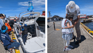 朝早くから多くの皆様が並ばれ、グループで搭乗され、金沢港内を1周し、海から金沢市や山々を見るという体験もしていただきました。